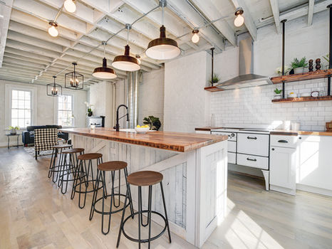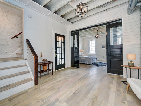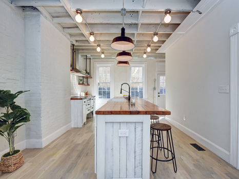 The essential structure of this Lawrenceville row house was preserved, while every surface and detail was thoughtfully reimagined. The result is a home where industrial character and farmhouse warmth meet in seamless balance. Reclaimed wood countertops, exposed brick, and white oak floors celebrate the building’s raw honesty, while lime-plastered walls and a schoolhouse barn door bring a modern softness. A refined simplicity—equal parts grit and grace—defines this Industrial Farmhouse revival.