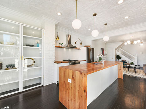 A standalone three-bedroom home in historic Manchester, inspired by the romance of Parisian apartments. Reclaimed ceilings from an abandoned pharmacy were carefully restored piece by piece, bringing soul and history to every room. Original floors and modern details create a balance of timeless charm and quiet luxury.